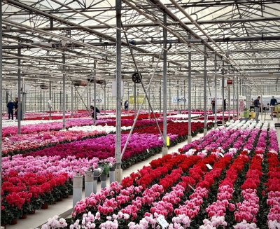 当大家一起穿过温室时,荷兰斯好莱仙客来育...