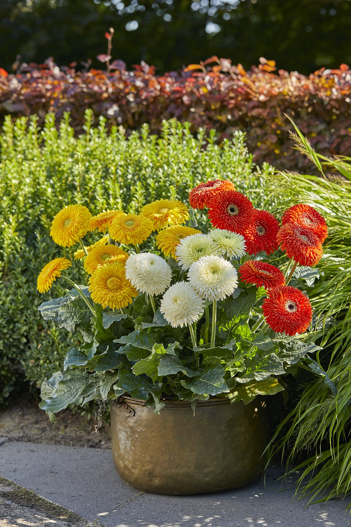 巨霸士非洲菊非常适合混合种植在同一大花盆里,或单独种植也抢眼。荣耀系列花形花色光彩夺目,将是市场销售的新宠儿。