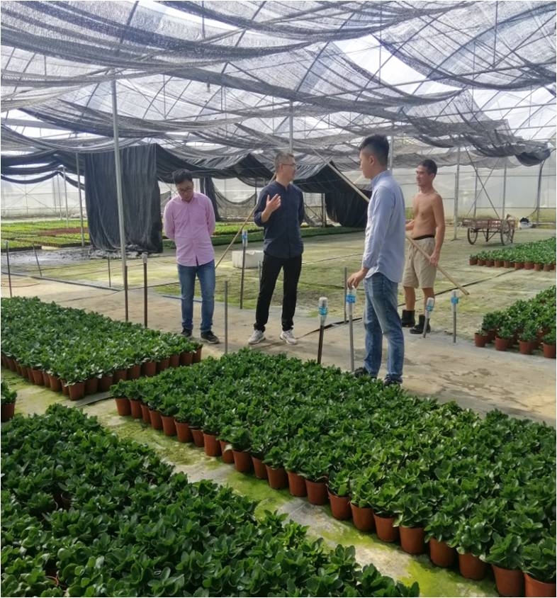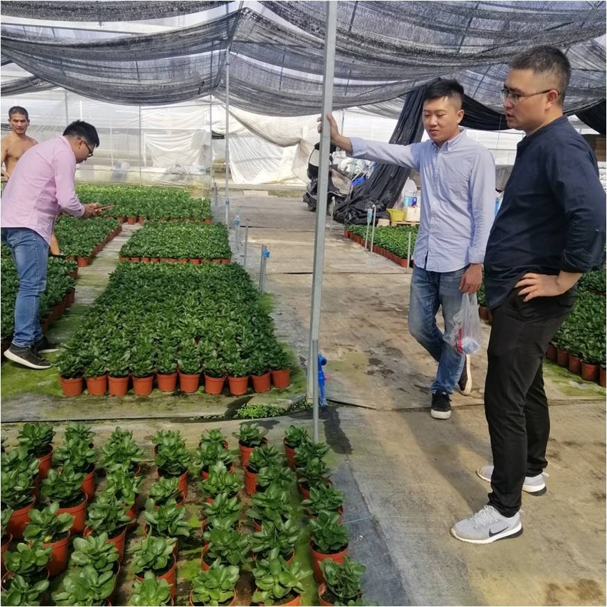 2021年10月下旬广州大汉公司业务服务人员和橙色多盟技术员张经理到广州增城区域数各长寿花种植户基地实地了解种植客户生产情况,进行长寿花技术沟通交流,及分享经验。