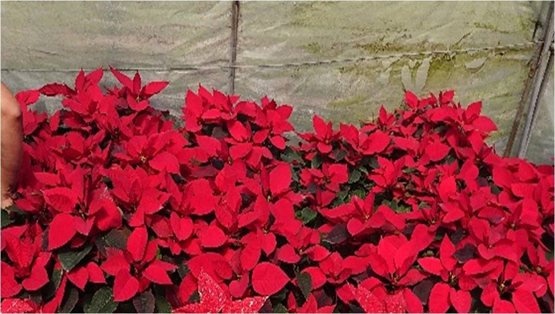 11月中旬亮红色的苞片,可以使用九月的自然短日,开花于11月中旬开始出货给新历新年年底使用。