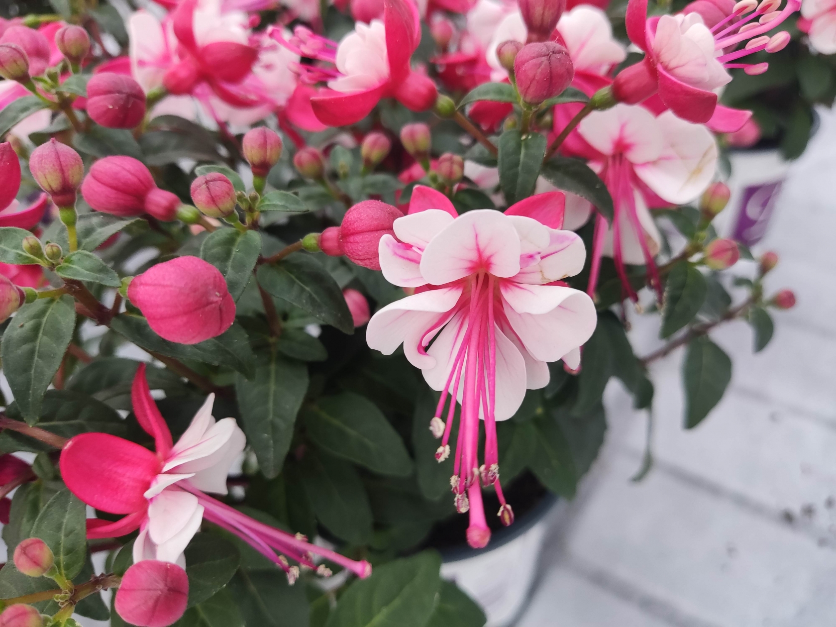 直立型倒挂金钟株型直立紧凑,分支良好,花朵双色艳丽,开花性佳,观赏花期长,适合9-17cm盆。