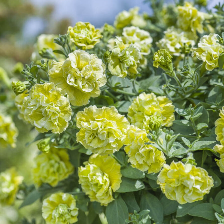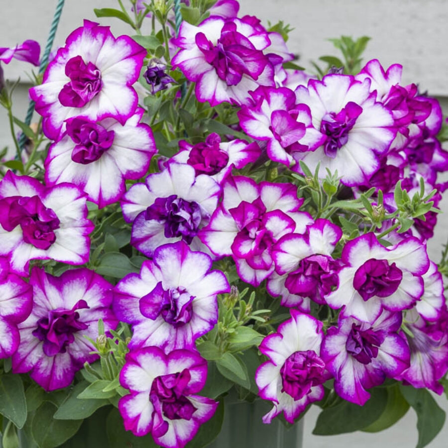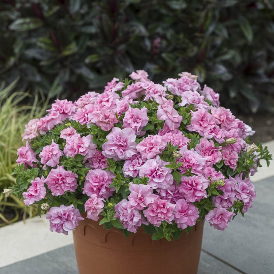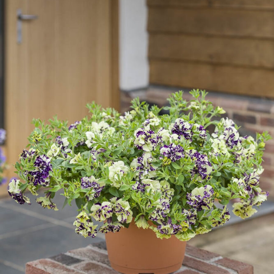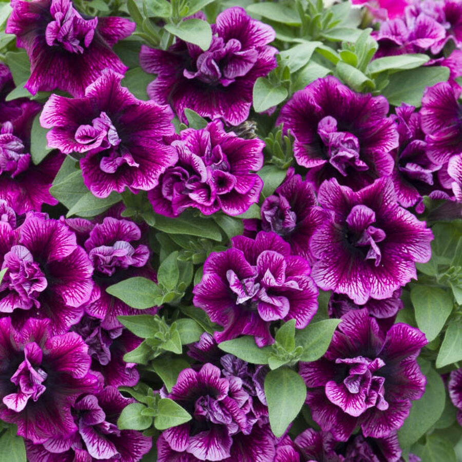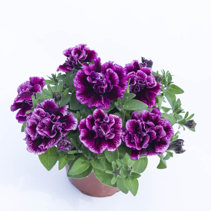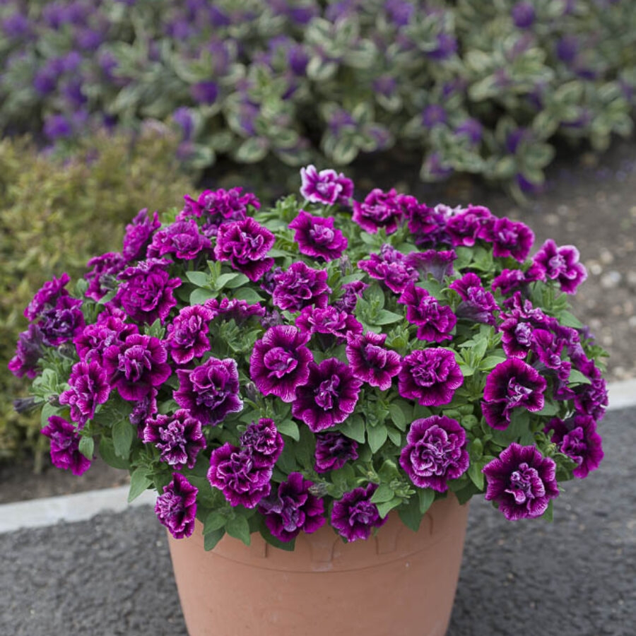 紧凑而浓密株型的重瓣矮牵牛,集中在盆子和吊篮上更具吸引力。户外表现佳。不易感染霜霉病。