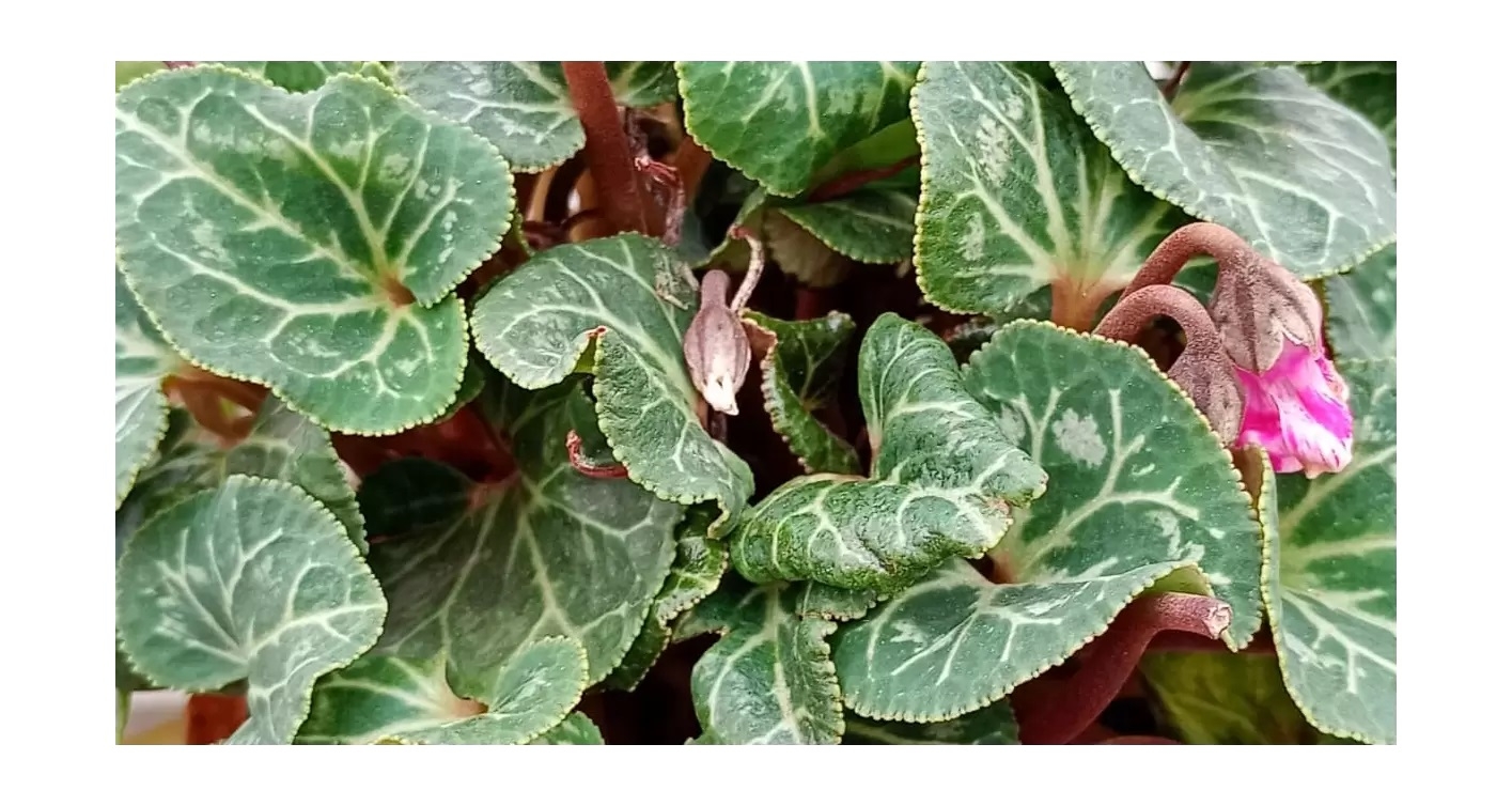 2. 叶子卷曲:受感染的仙客来的叶子可以向内或向下卷曲